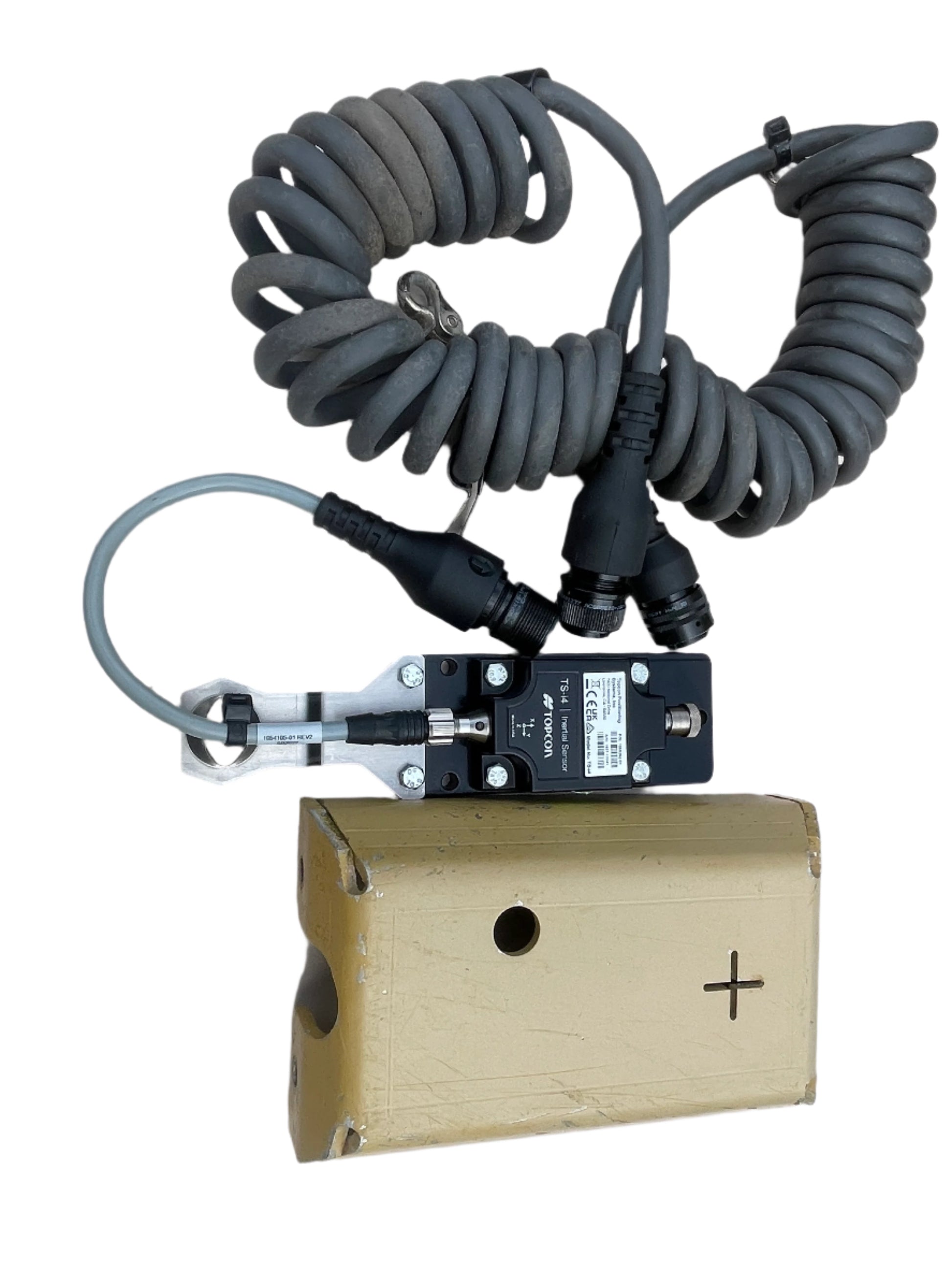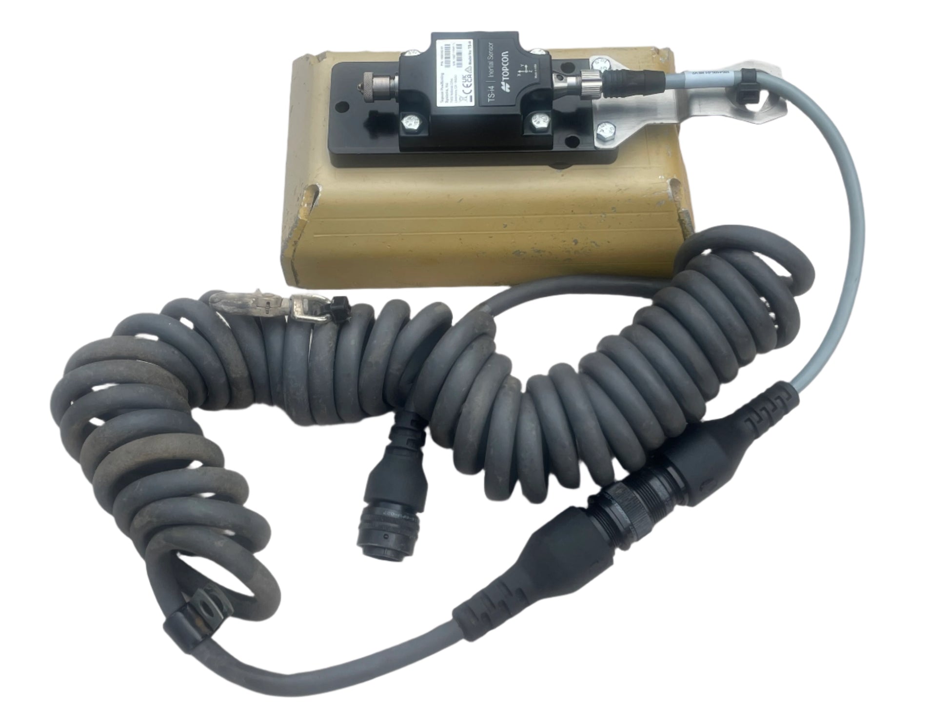 Topcon TS-i4 Inertial Sensor — complete set with original spiral connection cable and robust mounting bracket.